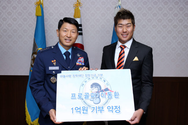 ¿¹ºñ¿ª °ø±ºº´Àå Ãâ½ÅÀÇ ÇÁ·Î°ñÆÛ À̵¿È¯ ¼±¼ö°¡ 3ÀÏ °ø±º ¼øÁ÷ Á¶Á¾»ç À¯Àڳฦ À§ÇÑ ¡®Çϴûç¶û ÀåÇÐÀç´Ü¡¯¿¡ ÀåÇÐ±Ý 1000¸¸ ¿øÀ» ±âŹÇϰí ÃÑ 1¾ï ¿øÀ» ±âºÎÇÒ °ÍÀ» ¾à¼ÓÇß´Ù.